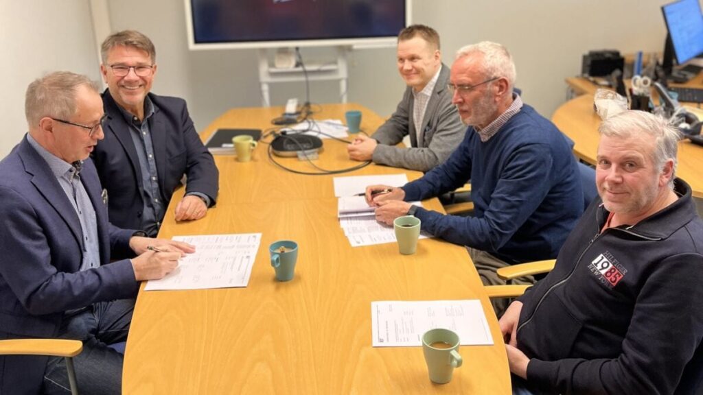 Kuvassa LHJ:n toimitusjohtaja Immo Sundholm (edessä vasemmalla), Suomen Infrapalvelu Oy:n toimitusjohtaja Jouni Äikäs, Ralf Ajalin Oy:n toimitusjohtaja Antti Puustinen (takana oikealla) ja tuotantojohtaja Risto Lindroos sekä Air Tikki Oy:n toimitusjohtaja Jari Silvo. (Kuva lainattu LHJ uutiset 11.11.2024).